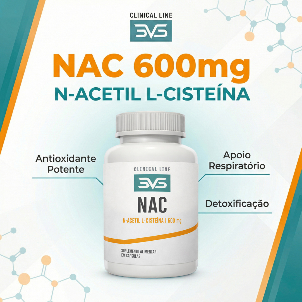 NAC 600mg N-Acetil L-Cisteína Alta Pureza Suporte Antioxidante Detox Metabólico Uso Diário