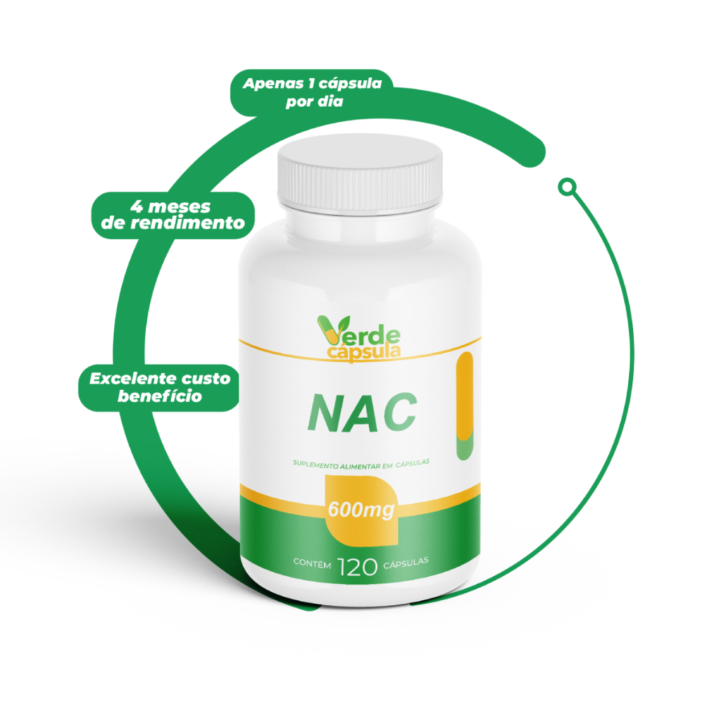 NAC 600mg Por Cápsula 120 Doses - Acetilcisteína - 4 meses de Rendimento - Verde Cápsula