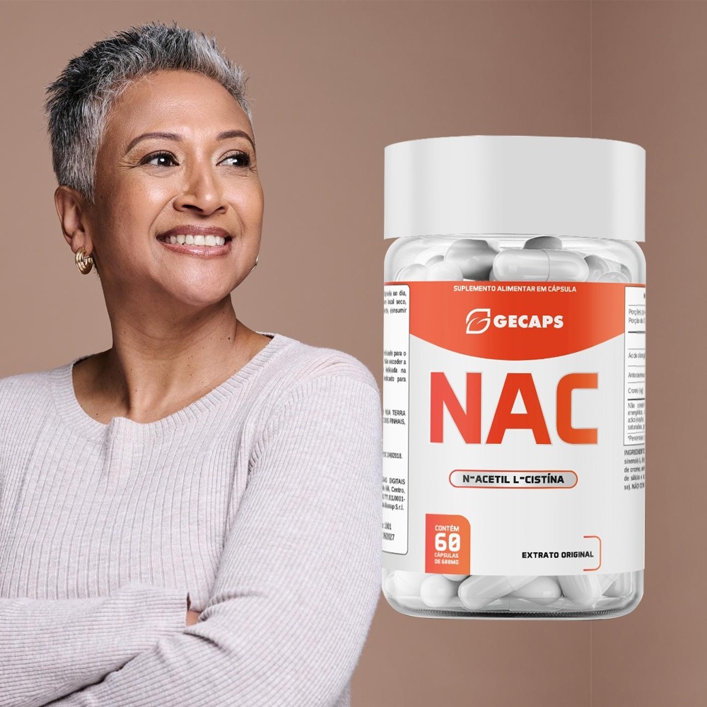 A NAC oferece diversos benefícios por ser um potente antioxidante, principalmente por aumentar os níveis de glutationa no corpo. Seus usos incluem a melhOra da saúde respiratória (ação mucolítica), desintoxicação do fígado, suporte a funções cognitivas (memória, aprendizado), auxílio ao sistema imunOlógico e regulação de neurotransmissOres. Composição: N-Acetil L-Cisteína de alta qualidade. Apresentação: Frasco com 60 cápsulas. Modo de uso: 2 cápsulas ao dia antes das refeições, ou conforme orientação profissional. Indicação: Uso adulto. Não contém: glúten, lactose, corantes ou conservantes artificiais. Além disso, a NAC tem sido estudada como coadjuvante no tratamento de doenças mentais e metabólicas. Validade: Todos os nossos produtos tem em emmedia de 12 a 24 meses. Produto isento de registro em conformidade com o anexo I da RDC 27/2010, e com a EDC 23/2000 da ANVISA.