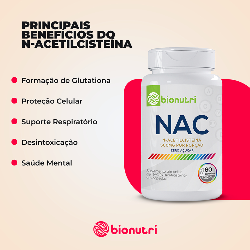 NAC N-Acetilcisteína 500mg 60 Cáps Antioxidante Fortalece Imunidade BIONUTRI