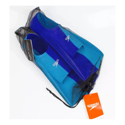Nadadeira Fin dual Speedo Para fortalecer os membros inferiores em seus treinos de natação, o pé de pato Training Fin Dual da Speedo possuipala curta permitindo alta frequência de pernadas e aumento da potência muscular, oferecendo excelente propulsão. A calçadeira fechada garante mais firmeza com total conforto, facilitando o movimento dos pés. A abertura frontal não danifica o esmalte natural das unhas. Acompanha sacola drenante fácil de carregar. Descrição: Nadadeira : 100% em silicone Dry Bag 25x50cm Embalagem:100% poliéster Cor: Azul