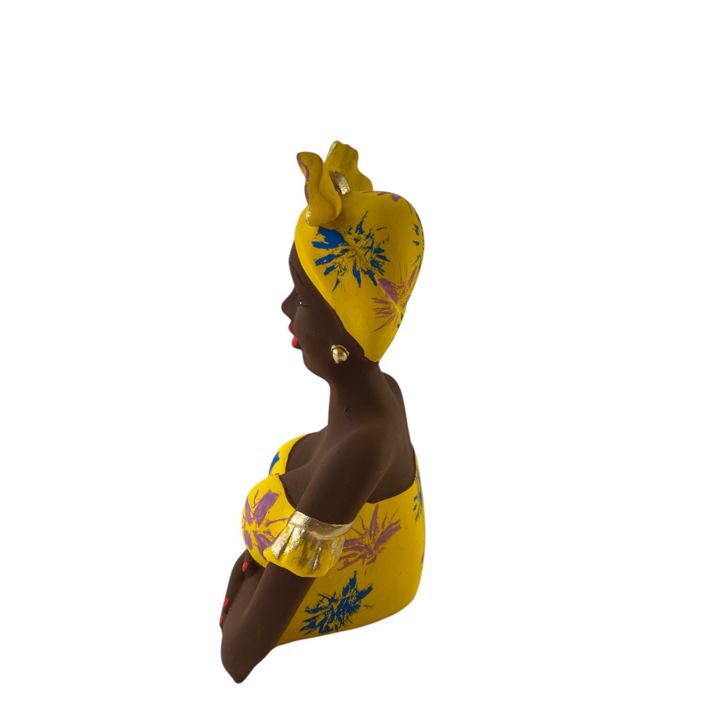 SOBRE O PRODUTO : produto feito em gesso decoração a mão produto artesanal A Boneca Namoradeira Laço é uma peça decorativa artesanal, típica da cultura brasileira, especialmente do artesanato mineiro. Ela é representada por uma figura feminina apoiada com os cotovelos em uma superfície, em uma pose contemplativa, remetendo à tradição das mulheres que ficavam na janela admirando a paisagem ou esperando por alguém. Essa boneca é uma ótima opção para quem aprecia artesanato e quer trazer um pouco da cultura brasileira para a decoração do lar ATENÇÃO MEDIDAS : 18X12 CM COR AMARELA