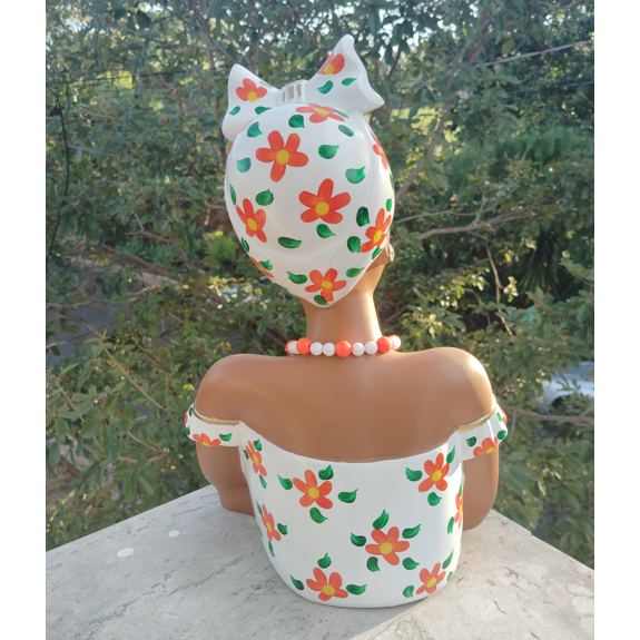 Namoradeira Media Busto de Janela Varanda Jardim Decorativa Roupa Branca Flor Laranja Pele Clara Bronzeada