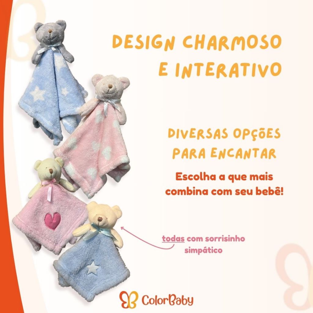 🧸 Naninha De Pelúcia Soft Antialérgico Para Bebês - ColorBaby 🧸 A Naninha da ColorBaby foi feita para ser a primeira companhia do seu bebê — macia, segura e cheia de carinho em cada detalhe. Com toque ultra aconchegante, acabamento reforçado e design leve, ela é perfeita para mãos pequenas. Cada modelo possui diferenciais no design que os tornam ainda mais especiais, ideais para presentear ou compor o enxoval. Feita com material antialérgico e lavável, é uma escolha prática e afetuosa para o dia a dia. 📝 DESTAQUES: • Texturas variadas e detalhes coloridos que estimulam os sentidos do bebê. • Tecido ultra macio e antialérgico. • Formato leve e maleável, fácil de segurar, ideal para mãos pequenas. 🔹 BENEFÍCIOS: • Acalma e transmite segurança emocional ao bebê. • Promove conforto em momentos de sono ou adaptação. • Ótima opção para presente de maternidade. • Desenvolvida para os menores: sem botões ou peças destacáveis — 100% segura para recém-nascidos. ⚠️ RECOMENDAÇÕES: • Uso indicado desde recém-nascidos (+0 meses). • Supervisionar o bebê durante o uso e verificar regularmente o estado da naninha para garantir segurança. • Lavar separadamente de outros itens para evitar contaminação, sempre à mão e sem uso de alvejante; • recomenda-se o uso de sabonete neutro. • Secagem à sombra. • Guardar em local limpo e seco quando não estiver em uso. ⚙️ ESPECIFICAÇÕES TÉCNICAS: Marca: ColorBaby Material externo: 100% poliéster antialérgico Enchimento: Polipropileno 📦 CONTEÚDO DA CAIXA: • 1 Naninha de Pelúcia Soft ColorBaby 📌 Garanta já a sua! Clique em COMPRAR agora e aproveite! 🛒 ⭐ Produto de Alta Qualidade 🎁 Clique em “Comprar Agora” e receba com toda a segurança e agilidade da Shopee! Atenção: A cor do produto pode variar de acordo com as configurações do seu aparelho, contraste e iluminação do ambiente.