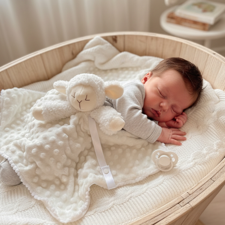 Naninha Premium Ovelha Super Fofinha para Bebê + Prendedor de chupeta – Antialérgica, Macia e Segura
