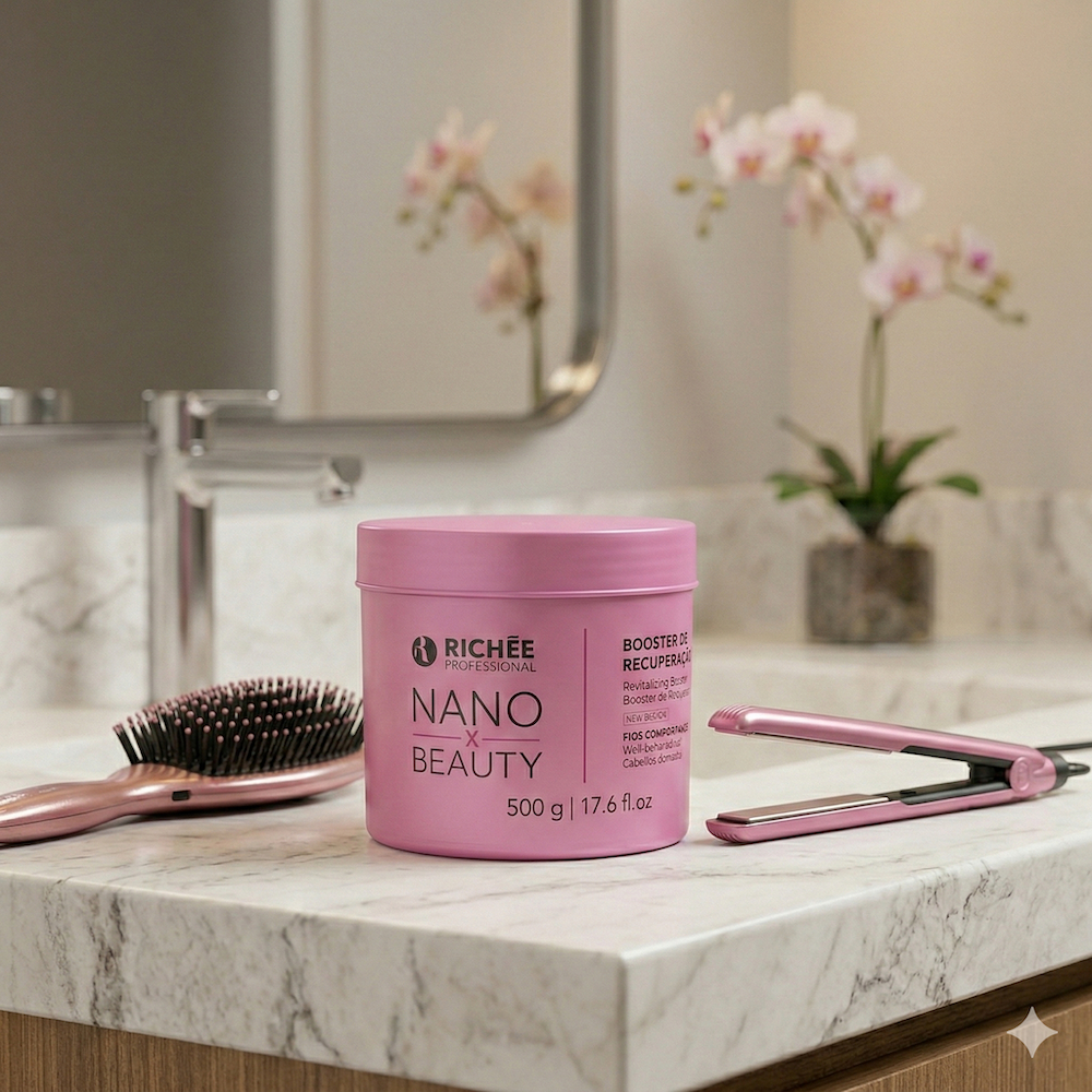 Contém: 1 NanoBeauty Booster Recuperação 500g NanoBTX Repair Repositor de Massa AGORA É NANOBEAUTY BOOSTER DE RECUPERAÇÃO com a mesma fórmula e resultado. Sua composição contém a Manteiga de Murumuru, Queratina Hidrolisada, Óleo de Macadâmia, Ácido Hialurônico e Ácido Lático, que juntos proporcionam a restauração gradativa dos fios, deixando-os mais resistentes. Com alto poder de hidratação,atua com eficiência extrema no controle do frizz, alinhamento dos fios, com redução de volume para um efeito liso duradouro e de brilho intenso. Modo de usar: Com os cabelos molhados, aplique o Shampoo Antirresíduos Nanobtx, massageando suavemente os cabelos e friccionando por toda a extensão dos fios até formar espuma. Enxágue e repita este processo até retirar todo resíduo dos fios. Seque os cabelos em 80% e divida em quadrantes. Com auxílio de um pincel, aplique Nanobtx Repair Repositor de Massa Termoativado em mechas ao longo de toda a extensão dos fios, sem depositar o produto no couro cabeludo. Aplique a 1 cm da raiz. Tempo de ação nos cabelos: -Cabelos finos e descoloridos, de 10 a 15 minutos; -Cabelos resistentes, até 30 minutos. Enxágue bem os cabelos somente com água, deixando um pouco do produto nos fios (enxaguar cerca de 80%).Escovar o cabelo usando também um secador. Finalize com a prancha térmica em mechas finas, de 10 a 15 vezes por mecha.