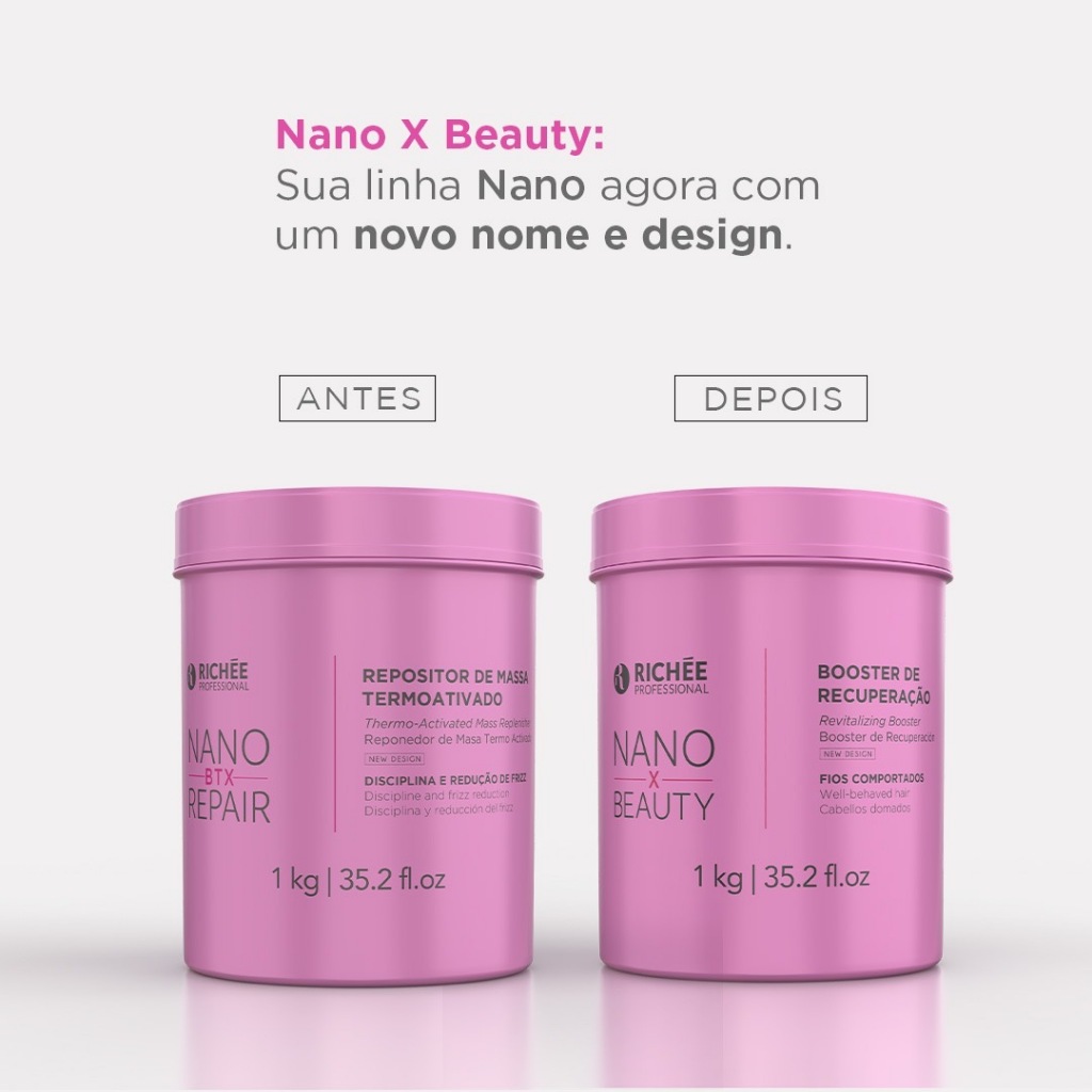 NanoBeauty BTX Booster Recuperação Termoativado Antifrizz 1Kg NanoBTX BTX Repair Repositor de Massa Richée Professional