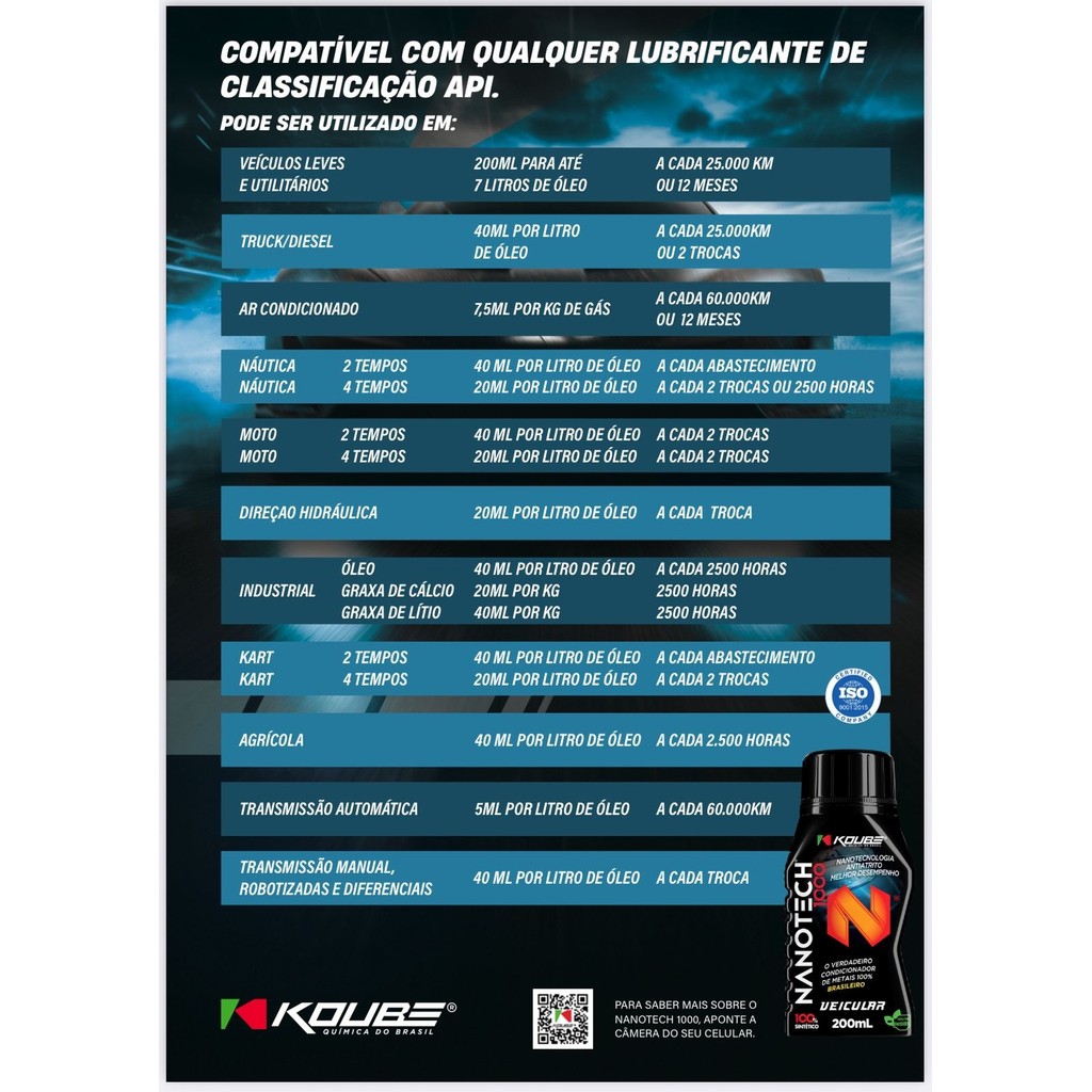 Nanotech 1000 Condicionador De Metais Koube Redutor Atritos Evita o Desgaste Prematuro