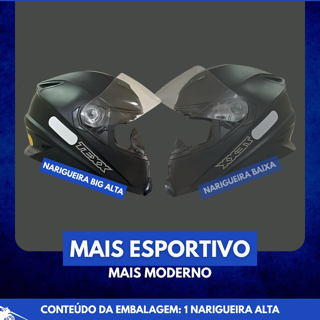 Narigueira Alta Com Respiro e Clipe Modelo Capacete Ls2 CÓDIGO: COD_24816 APLICAÇÕES RECOMENDADAS: • LS2 FF358 • LS2 FF353 • NORISK FF302 CONTEÚDO EMBALAGEM: • 1x Narigueira Alta Modelo Ls2 VANTAGENS: • Redução do embaçamento da viseira: desvia o ar quente da respiração para longe da viseira, mantendo a visibilidade. • Proteção do nariz: ajuda a evitar o vento direto e partículas incômodas no rosto, como poeira ou detritos em pilotagens mais rápidas ou longas. • Melhor ajuste e vedação do capacete: contribui para estabilidade, diminuição de ruído e conforto. • Melhora na aerodinâmica: ajuda a direcionar o fluxo de ar, reduzindo a fadiga facial e barulho do vento. • Menor chance de tocar o queixo, proporcionando uma folga confortável caso o encaixe geral do capacete esteja correto. !!!!!!!!!!!!!!! IMAGENS MERAMENTE ILUSTRATIVAS !!!!!!!!!!!!!!! SOBRE NOSSA EMPRESA: Somos uma organização com anos de experiência no mercado. Seja você um apaixonado por velocidade, um aventureiro de estrada ou um entusiasta da personalização, cumprimos a missão de fornecer peças e acessórios da mais alta qualidade para elevar sua experiência de pilotagem a um novo patamar. UTILIZE O CAMPO DE PERGUNTAS PARA TIRAR SUAS DÚVIDAS, e apenas confirme a compra em caso de CERTEZA de compatibilidade do produto!