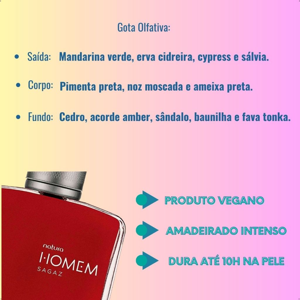 | Natura Homem Sagaz Deo Perfume Masculino Para Homem 100 Ml este produto | R$ 169,90 | 11% | 4.9/5 | 56 |