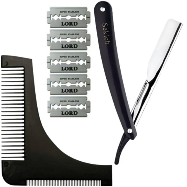 | Navalhete Inox De Barbeiro Profissional + Pente Alinhador + 5 Lamin... este produto | R$ 27,60 | 8% | 5.0/5 | 54 |