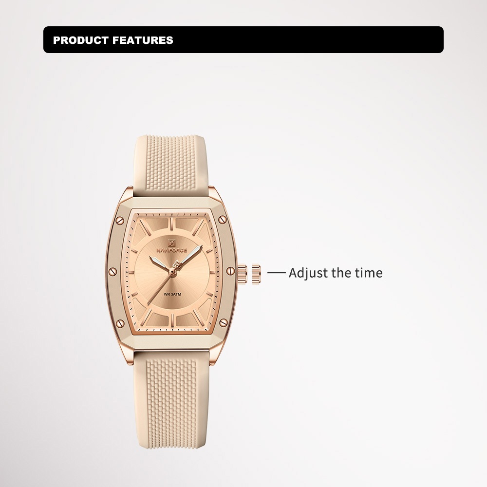 NAVIFORCE 5049 Relógio Feminino Minimalista Cravejado Em Formato De Tonneau