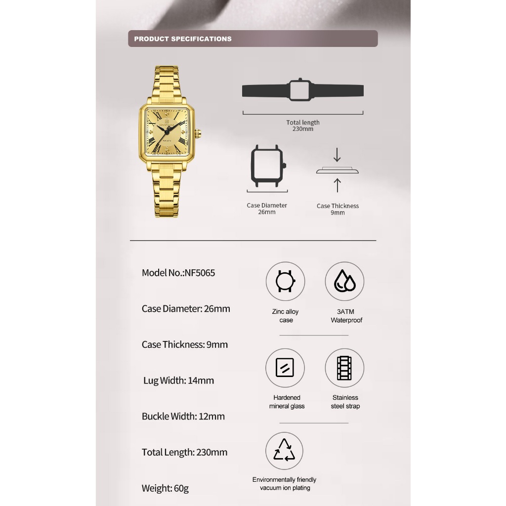 NAVIFORCE 5065 Relógio Quadrado De Alumínio Com Botão Duplo Feminino