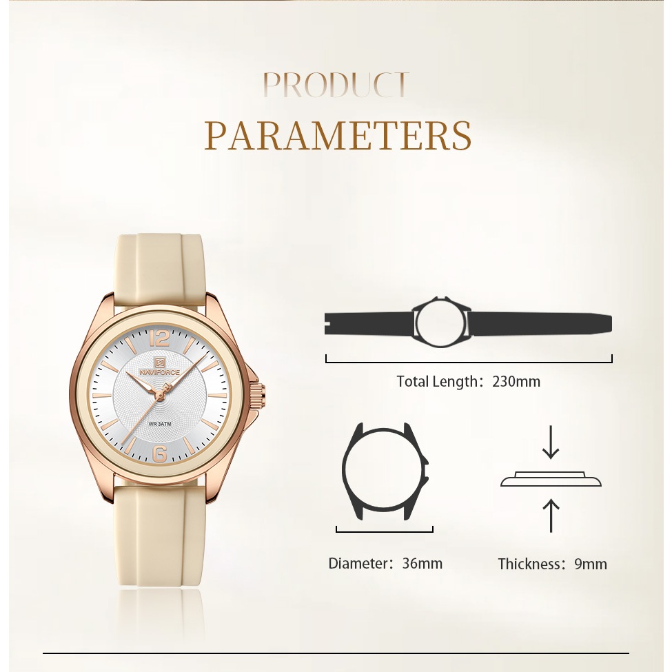 NAVIFORCE 5068 Relógio Marcador De Mostrador Clássico Com Pulseira De Silicone Para Mulheres