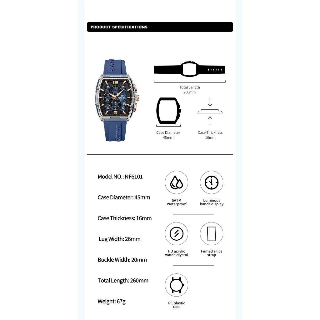NAVIFORCE 6101 Relógio Masculino À Prova D'água Com Mostrador Multifuncional Esportivo Moderno