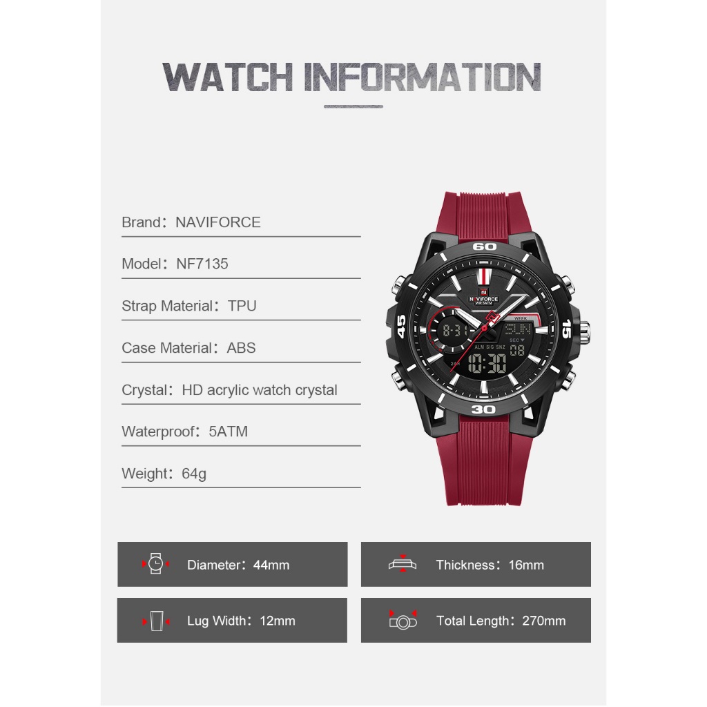 NAVIFORCE 7135 Movimento De Exibição Dupla Multifuncional Despertador De Contagem Regressiva De Tempo Duplo Relógio Masc