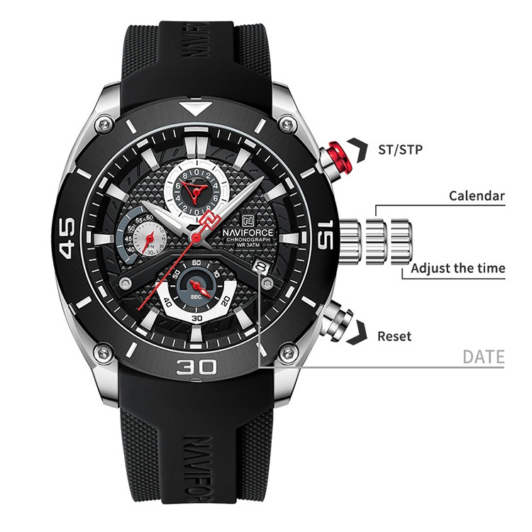 NAVIFORCE 8038 Relógio Esportivo Militar Estilo Empresarial Masculino Moda À Prova D'água Multifuncional Cronógrafo De Quartzo