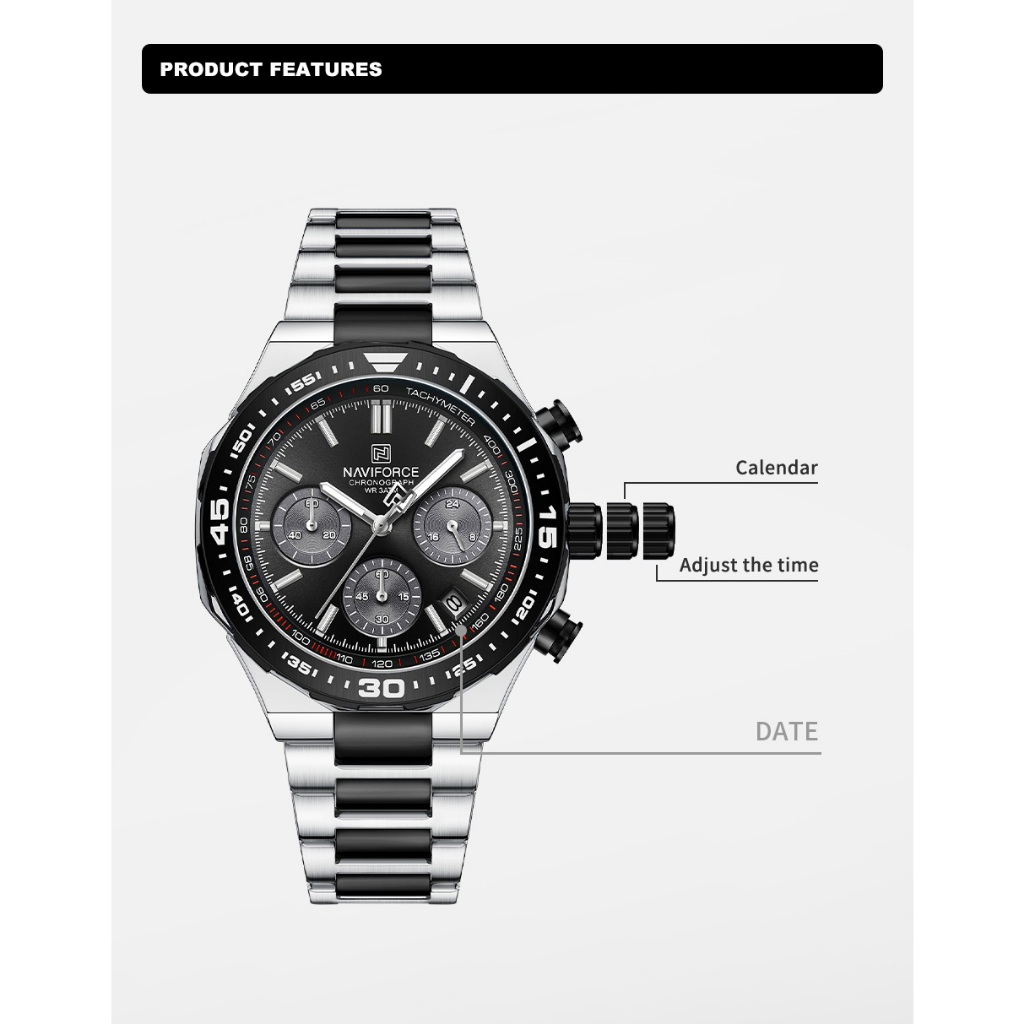 NAVIFORCE 8049 Movimento De Quartzo multi-Discagem Relógio Masculino Luminoso À Prova D'água
