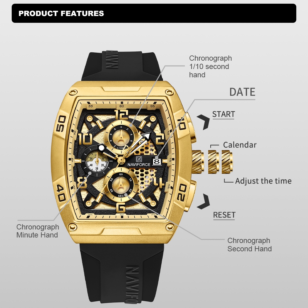 NAVIFORCE 8052 Fashion Casual Silicone Strap Quartzo Simulado Relógio/À Prova D'água