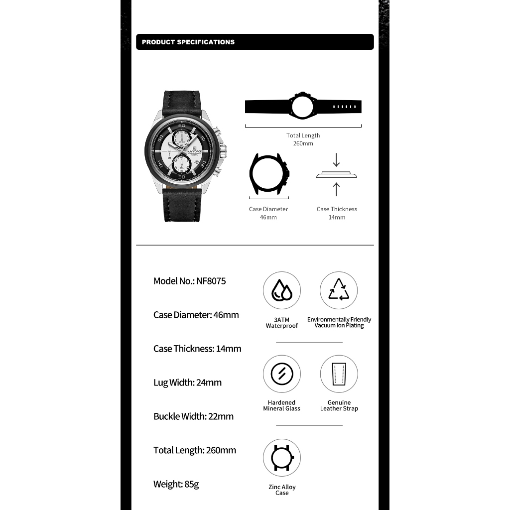NAVIFORCE 8075 Relógio Masculino Multifuncional De Couro Genuíno
