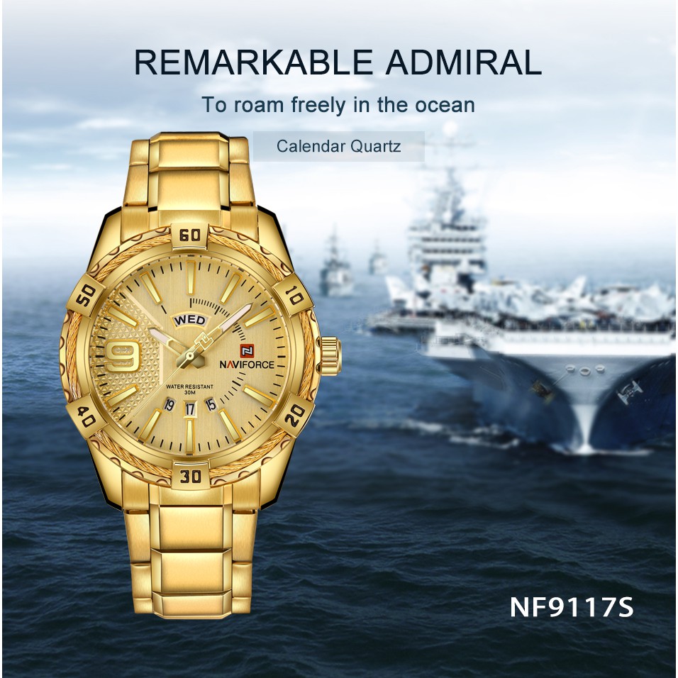 Naviforce 9117 Relógio Masculino Esportivo De Quartzo Impermeável Em Aço Inoxidável