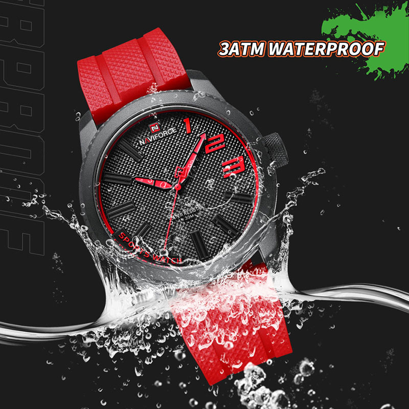 NAVIFORCE 9202T Relógios De Pulso Masculinos Simples Casual Silicone Vermelho De Quartzo À Prova D'água Relógio Marca De Moda