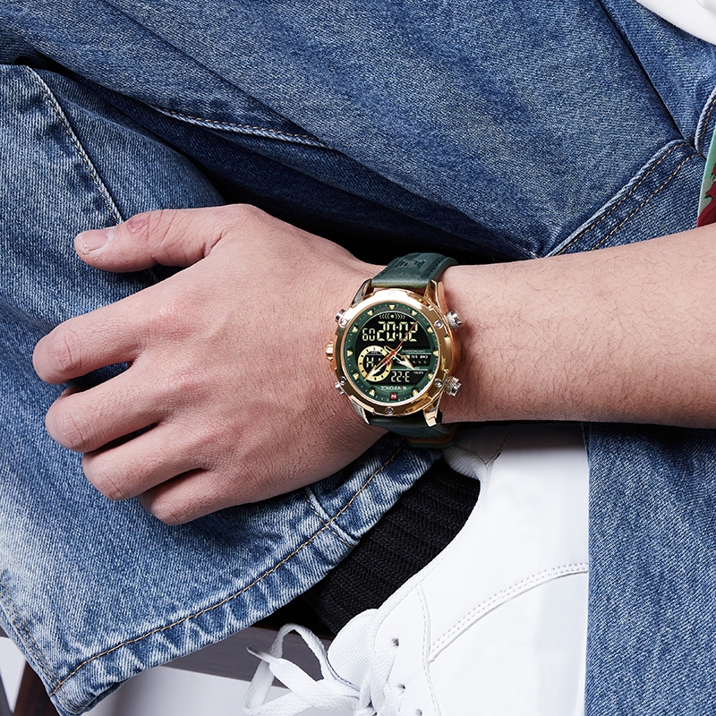 Naviforce 9208 Relógio De Luxo Marca Homens Lcd Relógios Esportivos Digitais À Prova D'água Quartzo Data Correia De Couro Masculino