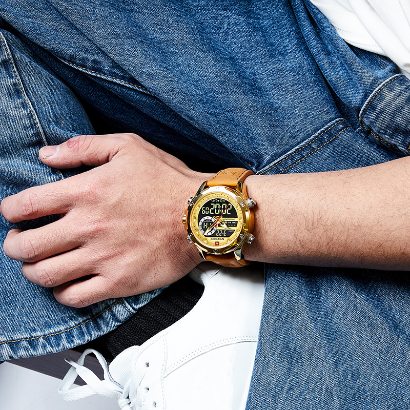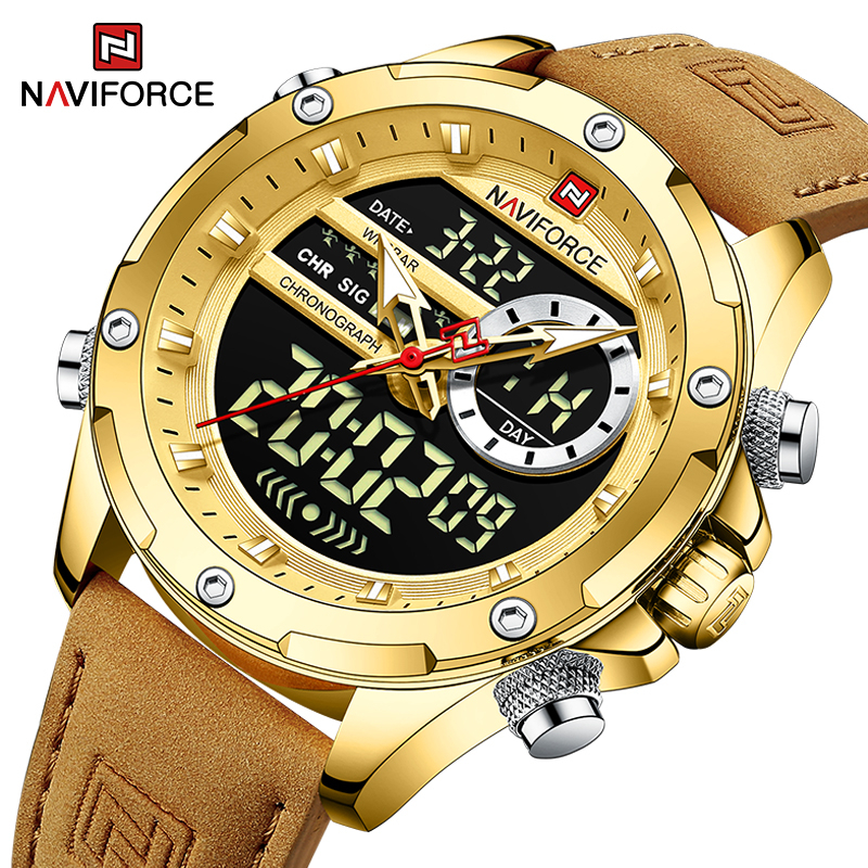 NAVIFORCE 9208 Relógio De Moda Masculina Analógico De Dupla Exibição Para Homens Movimento Seiko Couro
