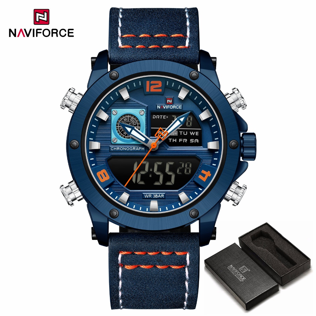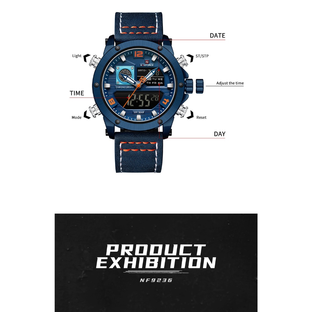 NAVIFORCE 9236 Relógio Masculino Com Pulseira De Couro Simples Movimento De Exibição Dupla
