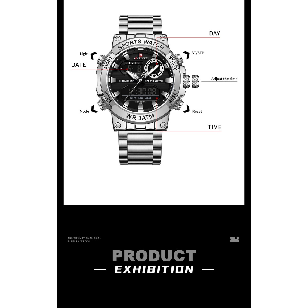 NAVIFORCE 9237 Relógio Esportivo Masculino Colorido Clash Personalizado Multifuncional Com Display Duplo