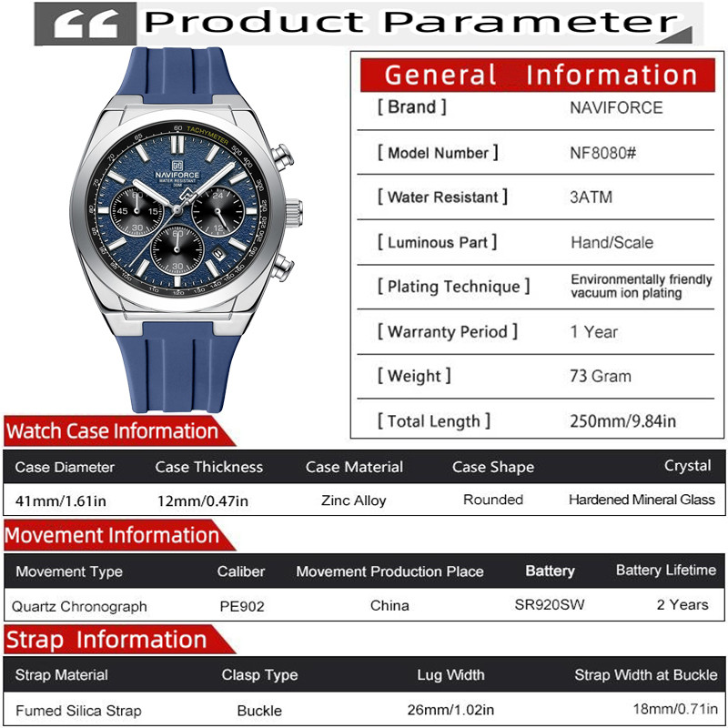 Naviforce Display Analógico Luminoso Quartzo À Prova Dwaterproof Água Cronógrafo Moda Pulseira De Silicone Mostrador De