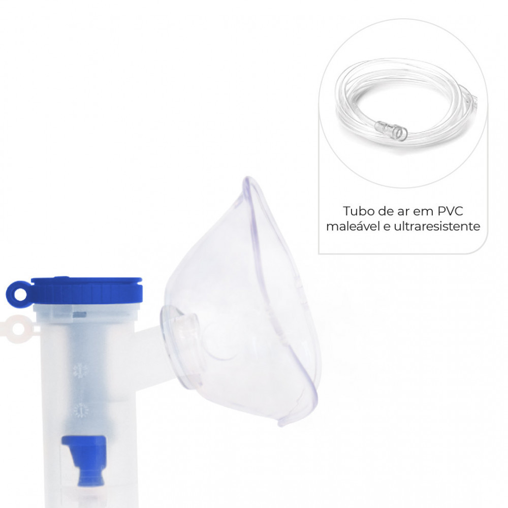 Compacto, econômico e silencioso O Nebulizador de Ar Dellamed está entre os mais compactos dentro da categoria de aparelhos de nebulização compressores do mercado. Possui excelente aproveitamento da medicação, deixando menos que 1ml de resíduo em seu reservatório. O inalador compressor é silencioso, versátil e pode ser utilizado com qualquer tipo de medicamento, inclusive corticoides que não são indicados para serem administrados através de inaladores ultrassônicos (exceto Pentamidina). O uso de nebulizador apenas com soro fisiológico, sem medicamento, não possui contraindicações. Este aparelho de inalação é um grande aliado para pessoas que possuam algum desconforto respiratório causados pela baixa umidade do ar e a poluição urbana, assim como para o alívio dos sintomas causados por sinusites, gripes e resfriados. O Nebulizador de Ar Dellamed é indicado para uso adulto e infantil. Diferenciais Silencioso: ruído menor que 60dB; Acompanha cabo USB-C; Possui registro na Anvisa e é homologado pelo Inmetro; Capacidade de 8ml no reservatório; Acompanha 2 tamanhos de máscara, atendendo a adultos e crianças; Máscara anatômica, garantindo o melhor encaixe no rosto. Características Taxa de nebulização média acima de 0,15ml/min; Permite o uso de corticoides; Não requer pilhas; Elásticas reguláveis nas máscaras; Funciona com qualquer carregador USB 5V; Compressor bivolt, permite o uso em qualquer lugar; Volume residual menor que 1 ml; Acompanha filtros extras para reposição; Super compacto, facilitando seu uso nos mais diversos locais. Especificações Técnicas: Medidas (C x L x A): 7,9 x 10,6 x 4,1cm; Peso: 156g; Composição: ABS PVC Circuito Eletrônico; Ruído: Menos de 60dB; Dose apropriada: Entre 2ml e 8ml; Volume residual: Menos de 1ml; Taxa de nebulização média: Acima de 0,15ml/min; Diâmetro da partícula pulverizada: MMD 2 +/-30; Métodos de desinfecção e esterilização: De acordo com as instruções do manual; Classificação de prevensão de choques elétricos: Equipamento de classe II do tipo BF; Proteção contra entrada de líquidos: IP21; Compatibilidade eletromagnética: Grupo 1 equipamento de classe B; Entrada da fonte de alimentação: 100V - 240V / 50Hz - 60 Hz 2A; Potência de funcionamento: 12W (6V 2A DC); Medidas embalado (C x L x A): 10 x 12,5 x 15 cm; Peso bruto embalado: 0,351 kg. Conteúdo da Embalagem 1 Aparelho compressor (motor); 1 Cabo USB-C; 5 Filtros extras; 1 Tubo de ar em PVC; 1 Reservatório para medicamento (copinho); 2 Máscaras - adulto e infantil em PVC; 1 Bocal para inalação pela boca. Garantia 12 meses para o compressor (motor) e 3 meses para os demais componentes sensíveis ao desgaste de uso normal.