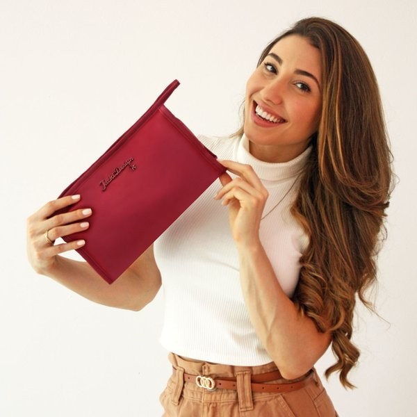 A Necessaire Envelope da coleção Premium, é uma escolha versátil para o seu dia a dia ou para viagens. Esta necessaire possui um lindo design, cuidadosamente elaborado com tecido de microfibra de alta qualidade, fecho em zíper e a distintiva tag da nossa marca com pingente decorativo. Com um amplo espaço interno, é perfeita para organizar seus itens essenciais de higiene pessoal e cosméticos. Complemente sua coleção Premium com nossas malas e frasqueiras coordenadas! CUIDADOS GERAIS: Para manter sua necessaire em ótimas condições, recomendamos limpar com um pano úmido. Em caso de necessidade de limpeza mais profunda, utilize sabão neutro ou álcool, e deixe secar naturalmente à sombra. ATENÇÃO: Para garantir uma vida útil prolongada do produto, evite deixar de molho, não lave na máquina e evite o uso de produtos químicos agressivos. Medidas: Comprimento: 27cm x Largura: 9cm x Altura: 17 cm