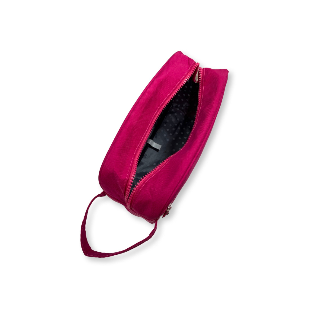 Estojo Organizador Necessaire 1 Bolso Frontal Divisória única Alça Lateral fixa Forro Interno MEDIDAS: - Altura: 14cm - Comprimento base: 25cm - Largura base: 08cm
