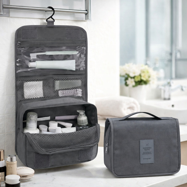 Necessaire Organizadora de Viagem Impermeável com Gancho para Pendurar, Bolsa de Maquiagem e Cosméticos com Zíper