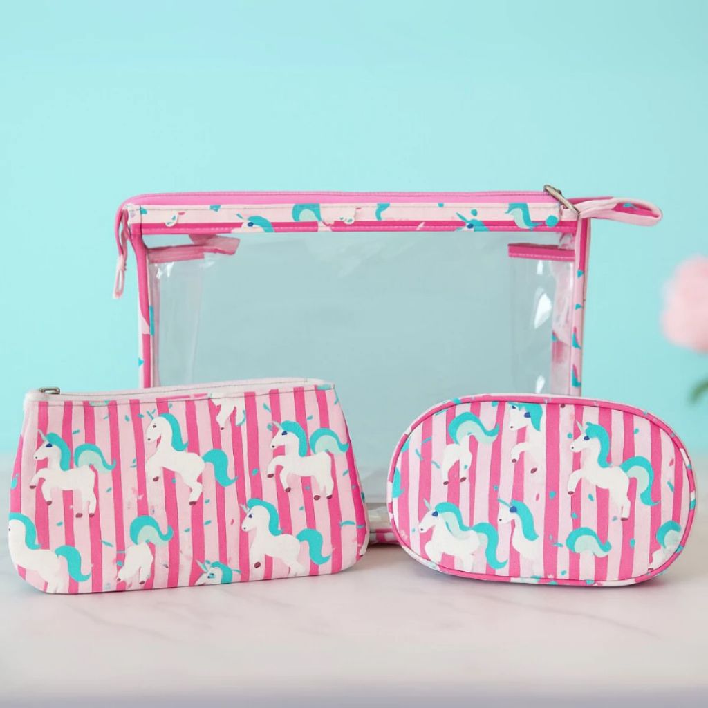 Kit de frascos para viagem é ideal para transportar produtos de forma prática e segura em qualquer viagem. Com embalagem em plástico que evita vazamentos, garantindo a segurança no transporte dos líquidos. CONTEUDO DO KIT PARA VIAGEM: 1 FRASCO COM VÁLVULA PUMP: - Altura: 12cm - Capacidade: 75ml - Material: Plástico 1 FRASCO COM TAMPA BORRIFADORA: - Altura: 11,5cm - Capacidade: 75ml - Material: Plástico 1 FRASCO COM TAMPA PUMP - Altura: 9cm - Capacidade: 75ml - Material: Plástico 2 POTES COM TAMPA DE ROSCA: - Diâmetro: 3,5cm - Capacidade: 10ml - Material: Plástico 1 NECESSAIRE MULTIUSO: - Comprimento: 15cm - Material: Plástico com Ziper ----------------------------------------------------------------------------------------------------------------------------------------------------------------------------------------- Kit Necessaire organizadora, ideal para viagens, trabalho e programações de última hora. Permite armazenar e transportar maquiagens, produtos de higiene, remédios e outros pertences, tudo com descrição e praticidade. Seu material em Poliéster e PVC é altamente resistente e durável, totalmente maleável, prático e fácil de lavar. Possui um design estiloso, com 03 peças e um ótimo espaço interno. São duas necessaires estampadas, de tamanho médio e pequeno e uma necessaire transparente Grande. Conteúdo do Kit – 01 Necessaire em PVC grosso transparente e impermeável medindo 22,5cm x 14,5cm x 7,5cm – 01 Necessaire em microfibra medindo 19,5cm x 12cm x 2,5cm – 01 Necessaire em microfibra medindo 16cm x 10cm x 4cm MODELOS: -Flamingo I -Flamingo II -Unicórnio I -Unicórnio II
