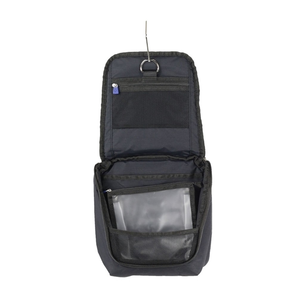 Necessaire organizadora para viagem com amplo espaço interno, divisórias e dois bolsos com zíper.