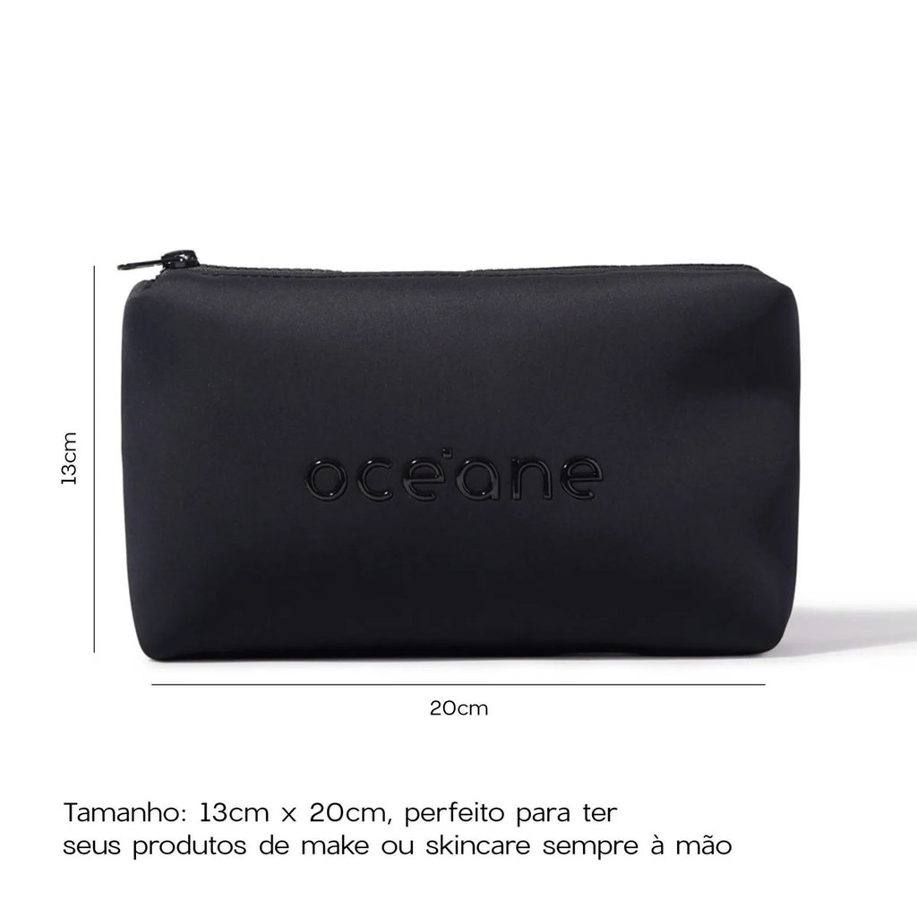 Descrição: A Necessarie Oceane Daily Makeup ideal para acomodar itens menores, como o seu batom preferido, um quarteto de sombras e a máscara de cílios super poderosa para dar um up no olhar. Aqui cabe tudo para uma make básica e linda. Seu formato retangular pequeno e discreto também merece destaque. Externamente, ele é revestido com neoprene resistente na cor preta, nas dimensões de 13 x 20 cm e mini medindo 13,5x10cm . Internamente, o cetim ultramacio protege seus produtos, enquanto o fechamento em zíper garante a segurança dos itens. Este acessório é ideal tanto para homens quanto para mulheres que gostam de deixar o seu dia a dia mais estiloso, além de ser uma ótima opção para presentear pessoas queridas com um item smart de beleza. MODO DE USAR: 1 - Crie a sua própria lista de itens para o nécessaire, incluindo preferencialmente os cosméticos que você usa no dia a dia. Para facilitar a organização, prefira as embalagens menores, como um gloss, máscara de cílios pequena e hidratante para mãos, ou ainda, aqueles frascos para viagem onde você pode colocar um shampoo ou um hidratante corporal, por exemplo. USO EXTERNO. MANTENHA FORA DO ALCANCE DAS CRIANÇAS. Conteúdo da embalagem: Uma unidade. Composição: Neoprene e Cetim. #Imagem ilustrativa. Cor do produto poderá variar dependendo da configuração do monitor ou celular.