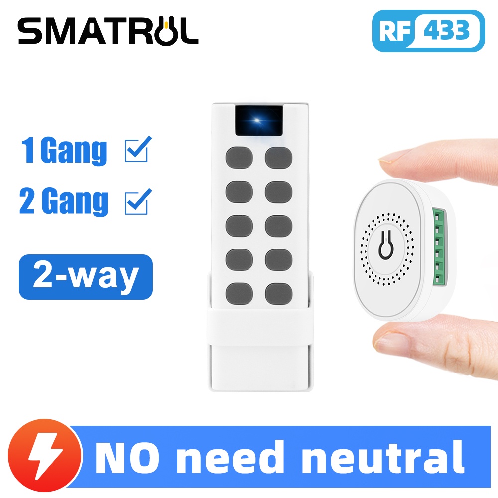 Nenhuma Neutro Fio 1/2 2 Gang Way RF 433 Mhz Interruptor De Luz Mini Módulo Casa De Controle Remoto Sem Inteligente De Parede Em Off Breake