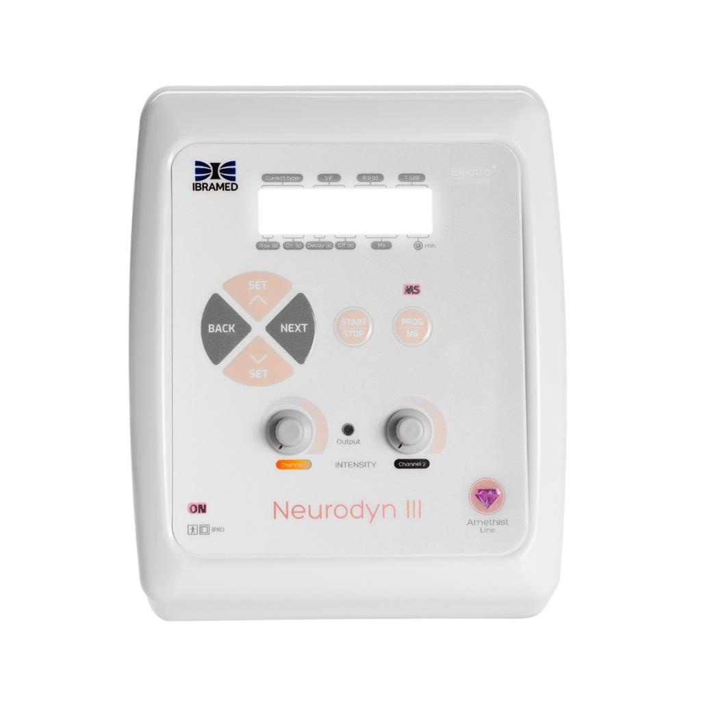Neurodyn III Ibramed - Aparelho de Tens e Fes com 2 Canais Neurodyn III é um equipamento portátil destinado às terapias por correntes TENS e FES. Possui 25 protocolos de tratamentos pré-programados e 10 particulares. Apresenta 2 canais de saída com controle independente de intensidade. Estímulo manual através da exclusiva tecla MS. Display LCD Blue Light com teclas soft touch. Acompanha bolsa para transporte. O Neurodyn III possibilita os seguintes tipos de correntes: - TENS convencional - TENS VIF - TENS Burst - FES Sincronizado - FES Recíproco - FES Sincronizado VIF - FES Recíproco VIF INDICAÇÕES DAS CORRENTES: - Corrente TENS: É indicada para alívio sintomático e tratamento da dor crônica, aumento da circulação sanguínea local, alívio sintomático dor pós-traumática aguda e dor pós-operatória aguda. - Corrente FES: É indicada para prevenção ou tratamento de atrofia por desuso, aumento da circulação sanguínea local, reeducação muscular, manutenção ou aumento da amplitude de movimento e relaxamento de músculos espásticos. INDICAÇÕES: - Pós-cirurgico imediato e tardio. - Fortalecimento muscular. - Tonificação muscular. - Aumento da resistência muscular. - Redução de edema. - Tratamentos traumato-ortopédicos. TRATAMENTOS: - Redução de dor aguda e crônica; - Recuperação funcional; - Controle de espasticidade; - Pré e pós operatório; - Cervicalgias, Cervicobraquialgias; - Lombalgias, Ciatalgias; - Dores de Cabeça, Face, Dentais e de ATM; - Artrites; - Bursites; - Luxações; - Entorses; - Contusões; - Miosites; - Tendinites; -Dores miofaciais; - Relaxamento muscular; - Dores de Câncer; - Dores nas Costas; - Dores no Coto de Amputação e em Membros Fantasma; - Dores das Lesões Medulares; - Facilitação Neuromuscular; - Fortalecimento Muscular; - Ganhar ou manter amplitude de movimento articular. FICHA TÉCNICA - Protocolos: 25 protocolos pré-programados e 10 particulares - Intensidade: 0 a 120 mA - Pulso: 50 a 500 US - Canais: 02 Canais - Correntes: TENS e FES - Frequência: 0,5 a 250 Hz - Terapia: Eletroestimulação DADOS TÉCNICOS - ANVISA: 10360310012 - Bivolt 127 e 220 volts | 50 / 60 Hertz - Uma saída para dois canais - Dimensões: 15 x 18,5 x 9,5 (L x P x A cm) - Peso aproximado sem acessórios: 0,8 kg ITENS INCLUSOS: 01 cabo de energia. 01 cabo laranja duas vias e preto duas vias - cód. 03049006. 04 eletrodos de borracha - cód. 03026024. 01 bisnaga com gel (100 gr). 01 bolsa para transporte - cód. 03026040. 01 acesso ao manual de instruções digital. O uso de cabos, eletrodos e outros acessórios diferentes daqueles especificados acima, pode resultar em aumento das emissões ou diminuição da imunidade do equipamento. O aparelho e suas características poderão sofrer alterações sem prévio aviso.