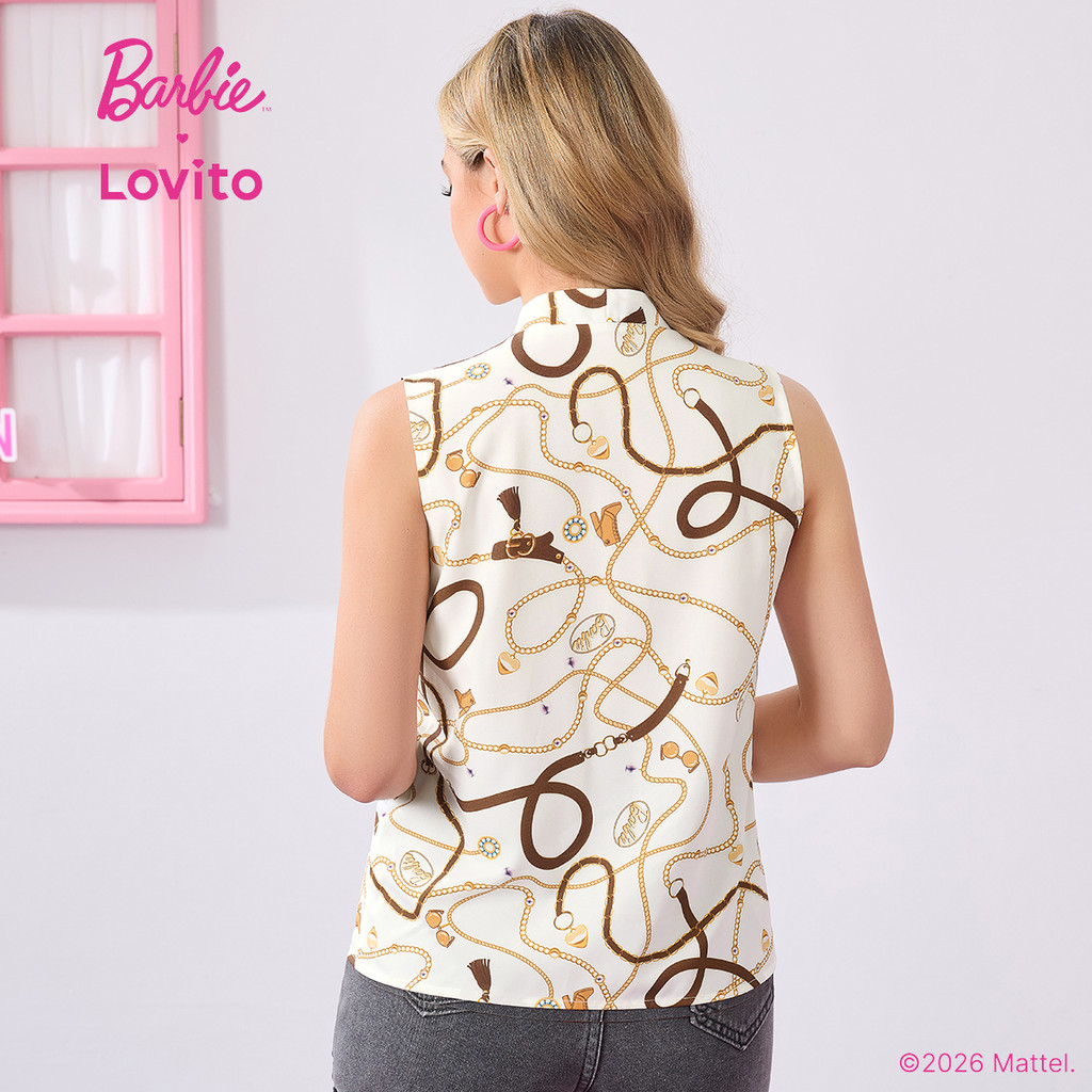 (New arrival) Barbie™ X Lovito Blusa Casual Feminina com Botões Plissados Primavera/Verão BLBL3PAD034
