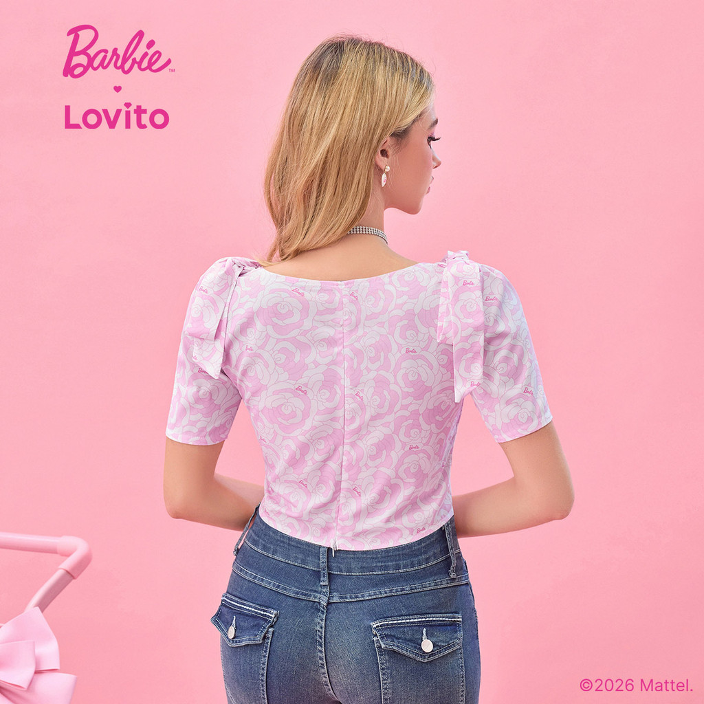 (New arrival) Barbie™ X Lovito Blusa Casual Padrão Amarrar Frente Blusa Primavera/verão para Mulheres BLBL2PAD023