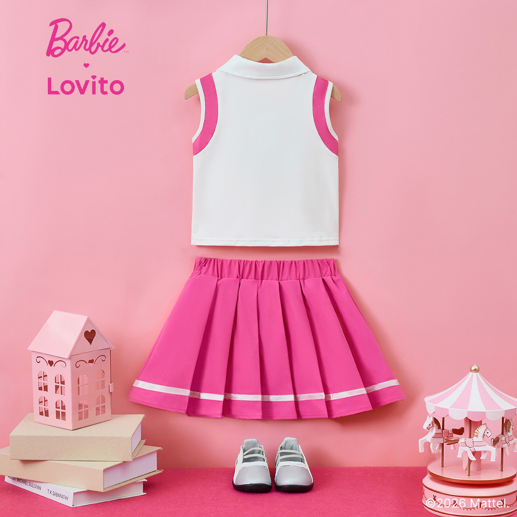 (New arrival) Barbie™ X Lovito Kids Conjunto Saia Fofa Pregas Botões Primavera/Verão Rosa Meninas KSBL3PAD056