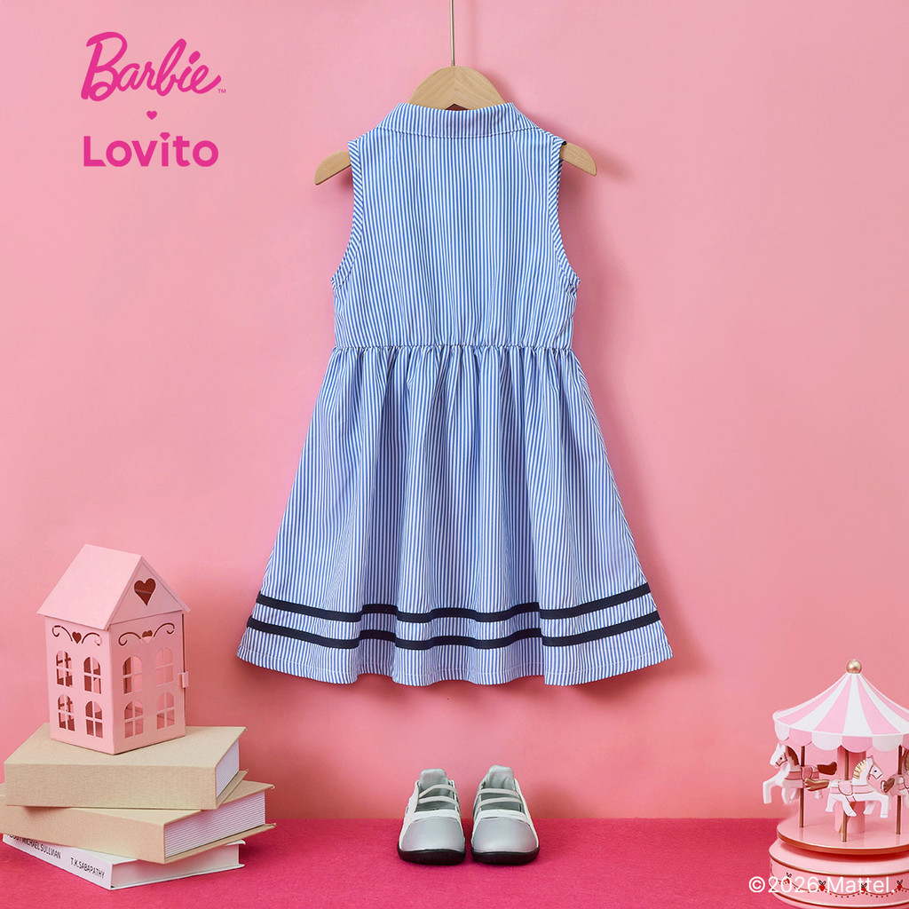(New arrival) Barbie™ X Lovito Kids Vestido Fofo Botões Faixa Contraste Primavera/Verão Azul Menina DRBL3PAD054