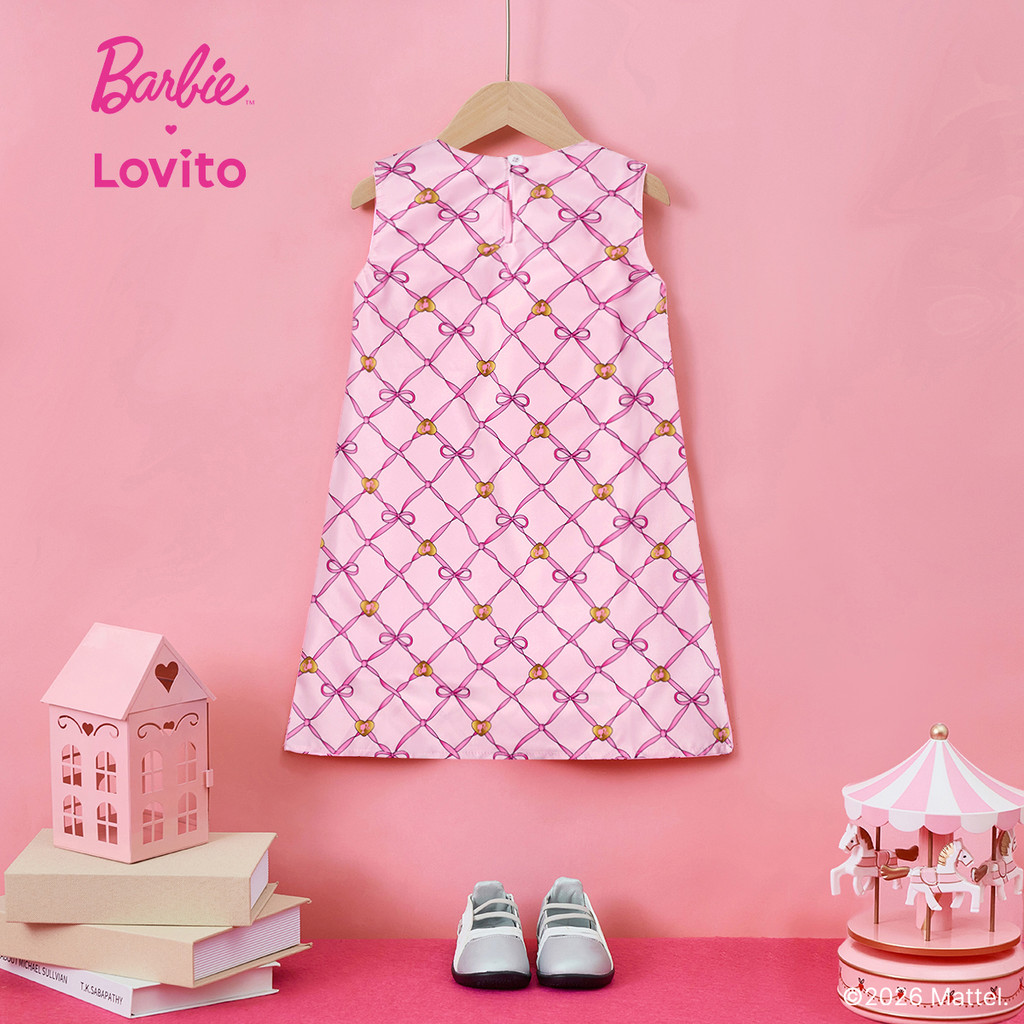 (New arrival) Barbie™ X Lovito Kids Vestido Rosa Primavera/verão com Laço Fofo para Menina DRBL3PAD003