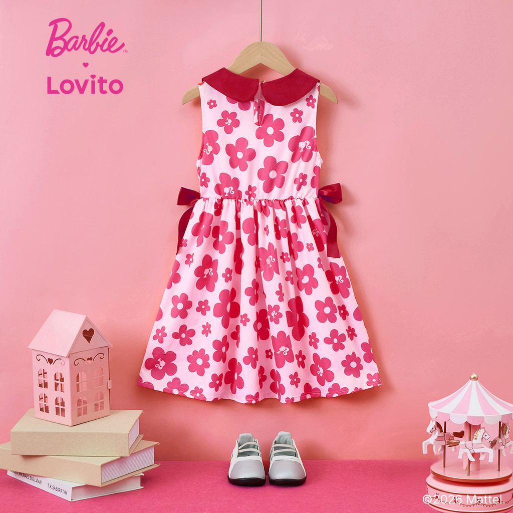 (New arrival) Barbie™ X Lovito Kids Vestido Vermelho Fofo com Laço Primavera/verão para Menina DRBL2PAD002