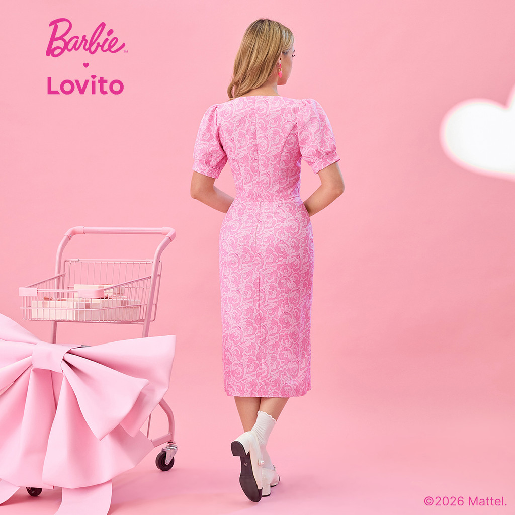 (New arrival) Barbie™ X Lovito Tops ou Bottoms Casuais com Botões Estampa Primavera/verão para Mulheres. KSBL2PAD030