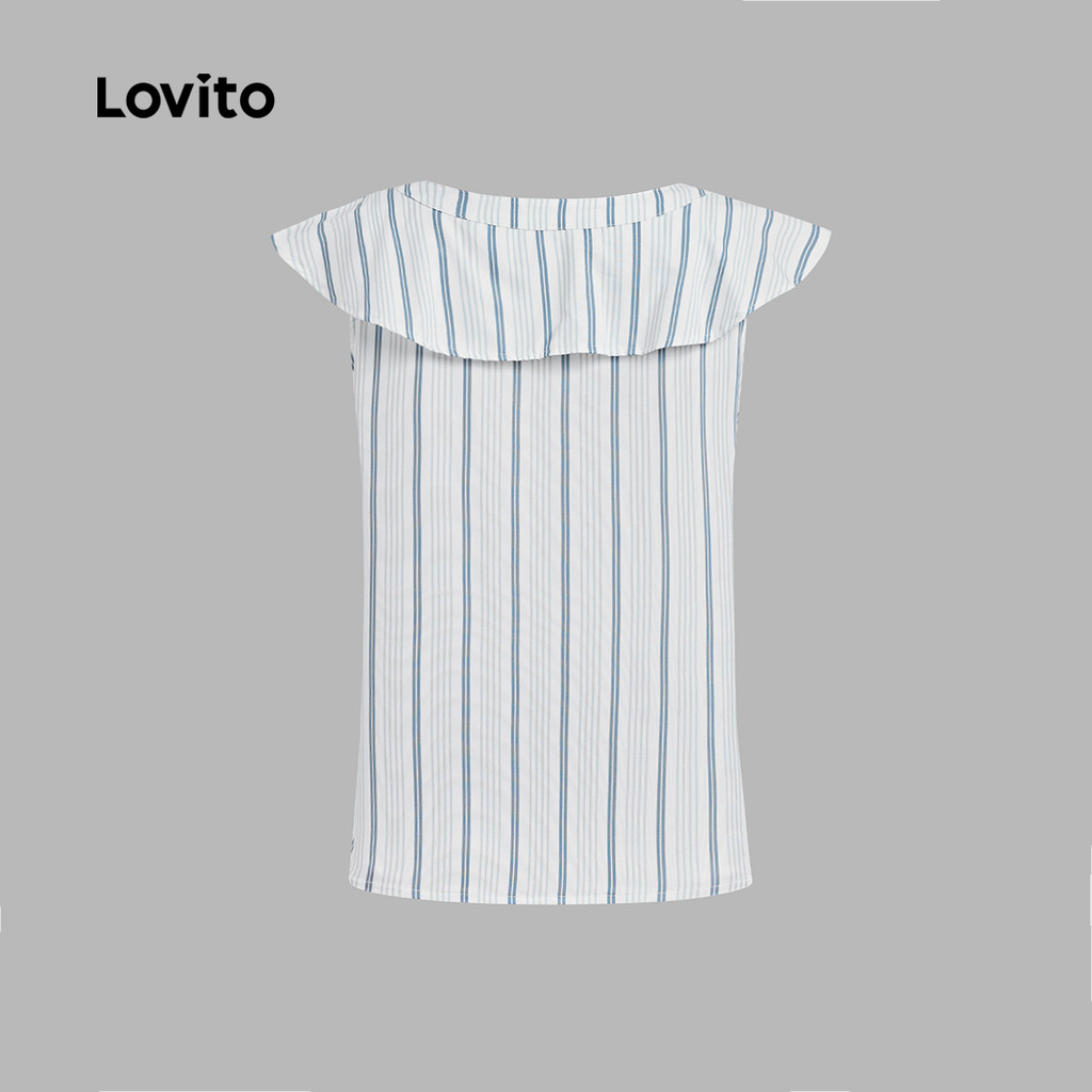 ✅DESTAQUES -❤️Babado -❤️Botão -❤️Macio e confortável -❤️Primavera e verão ✅DESCRIÇÕES Estampa / Padrão:listrado Estilo:Boho Tamanho Plus:Não Material:Poliéster Composição:95% Poliéster + 5% Elastano Tipo de modelagem:Regular Fit Transparência:Não Esticar:Não estica Feito na China ✅O PACOTE INCLUI 1XBlusa ✅INTRODUÇÃO LOVITO A Lovito é uma marca em crescimento que acredita no poder das meninas. Estamos comprometidos em oferecer opções de roupas fashion e acessíveis, para todos os estilos, necessidades e identidades. Acreditamos que a moda deve ser divertida, liberadora e fazer você se sentir incrível. Afinal, o melhor acessório para qualquer look é a autoconfiança! ✅NOTAS DE COMPRA Antes de comprar, dê uma olhadinha na tabela de medidas disponível no site. Lembre-se de que, por serem feitas manualmente, as medidas podem variar de 1 a 2 cm. As cores dos produtos também podem ter pequenas diferenças em relação às fotos, dependendo da iluminação e das configurações do seu dispositivo. Siga nossa loja e conheça novos itens e as melhores ofertas para você!! Se você tiver alguma dúvida, converse conosco e responderemos o mais rápido possível.😊