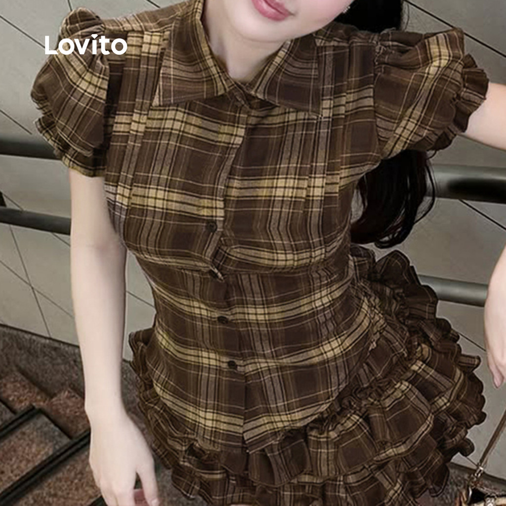 ✅DESTAQUES -❤️Botão -❤️Padrão -❤️Lazer -❤️Leve e respirável -❤️Primavera e verão ✅DESCRIÇÕES Estampa / Padrão:Gingame Estilo:Casual Tamanho Plus:Não Material:Poliéster Composição:95% Poliéster + 5% Spandex Tipo de modelagem:justo ao corpo Transparência:Não Esticar:não-elástico Feito na China ✅O PACOTE INCLUI 1XBlusa ✅INTRODUÇÃO LOVITO A Lovito é uma marca em crescimento que acredita no poder das meninas. Estamos comprometidos em oferecer opções de roupas fashion e acessíveis, para todos os estilos, necessidades e identidades. Acreditamos que a moda deve ser divertida, liberadora e fazer você se sentir incrível. Afinal, o melhor acessório para qualquer look é a autoconfiança! ✅NOTAS DE COMPRA Antes de comprar, dê uma olhadinha na tabela de medidas disponível no site. Lembre-se de que, por serem feitas manualmente, as medidas podem variar de 1 a 2 cm. As cores dos produtos também podem ter pequenas diferenças em relação às fotos, dependendo da iluminação e das configurações do seu dispositivo. Siga nossa loja e conheça novos itens e as melhores ofertas para você!! Se você tiver alguma dúvida, converse conosco e responderemos o mais rápido possível.😊