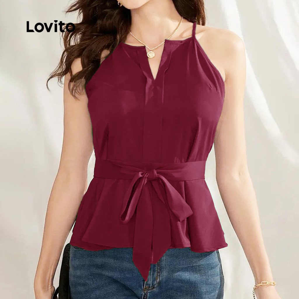 (NEW) Lovito Blusa Casual com Cadarço Plissada Primavera/verão Cor Bordô para mulheres L155ED834